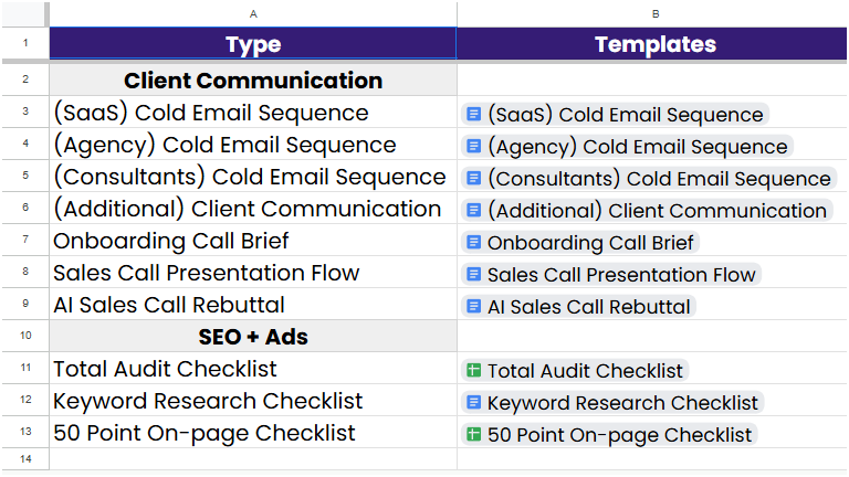 Email Sequences | – SaaS Cold Email Sequences – Agency Cold Email Sequences – Consultant Cold Email Sequences – Additional Client Communication Scripts |